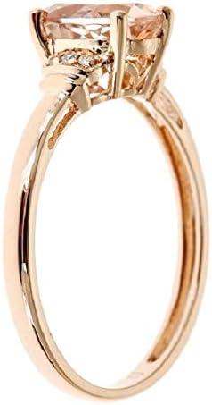 Gin & Grace 10K Rose Gold Genuine Morganite Ring with Diamonds|Ethically, authentically & organically sourced (Cushion-cut) shaped Morganite hand-crafted jewelry for her | Morganite Ring for women