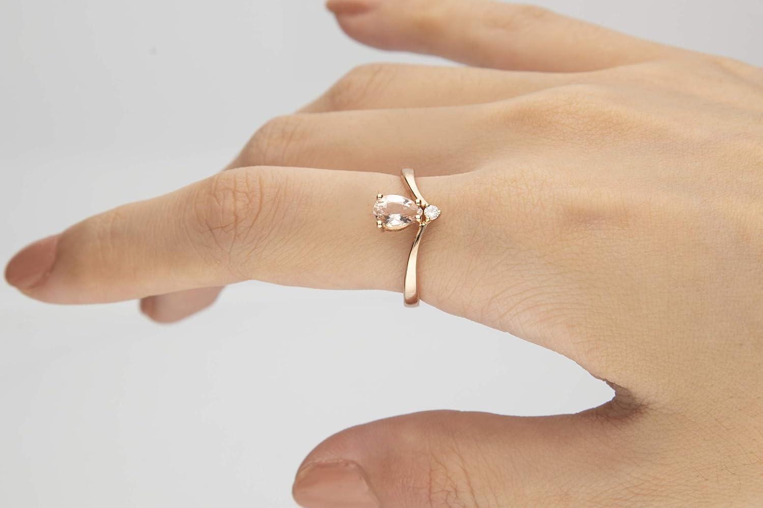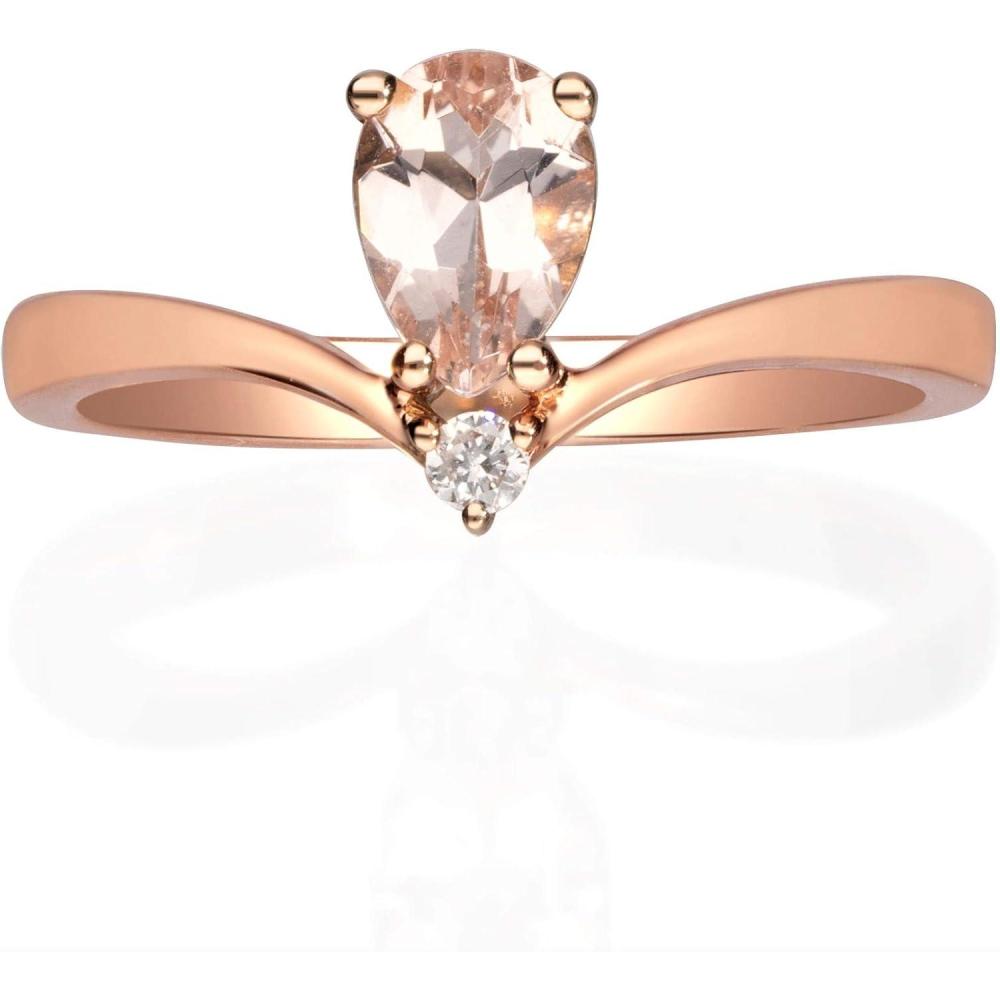 This lovely Gin & Grace ring showcases pear-cut morganite stones with shimmering diamond accents. The piece is crafted of 10-karat rose gold that is polished to a high shine for a radiant finish. Gemstone colors: Pink Gemstone shapes: Pear One prong-set pear-cut morganite measures Gemstone weight: 0.63 carats Diamonds: 1 Diamond cut: Round Diamond measurements: 1 mm Diamond weight: 0.04 carat Color: G-H Clarity: I1-I2 Setting: Prong Metal: 10k rose gold Finish: High polish Metal weight: 2.36 grams Ring setting dimensions: 18 mm wide x 22 mm long x 5 mm deep Band dimensions: 2 mm wide Sizes: 7