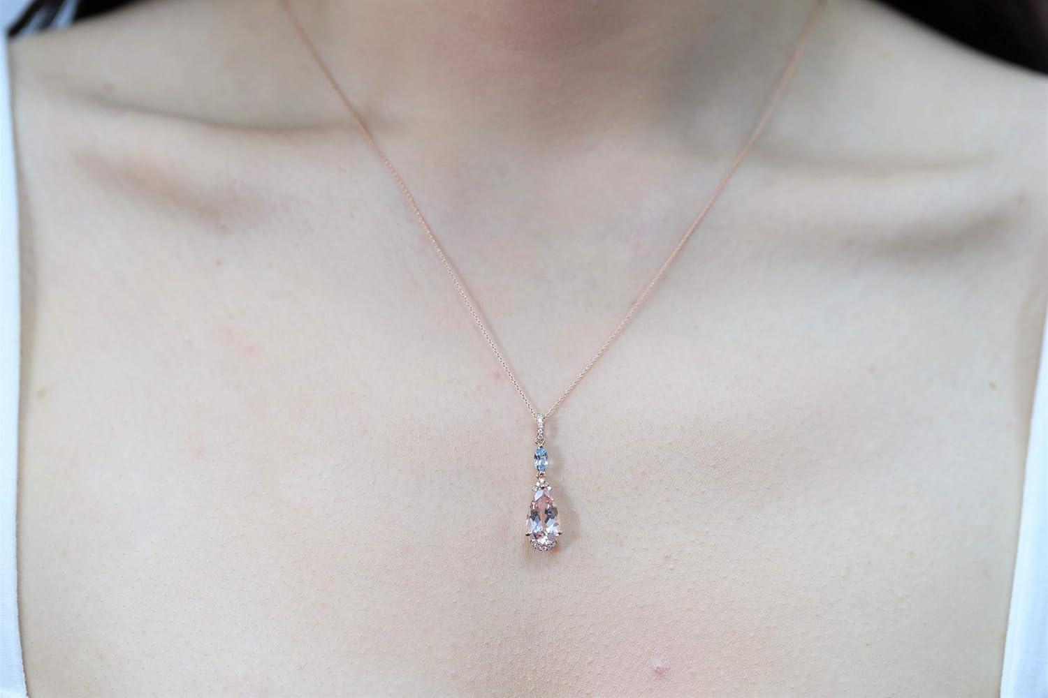 Decorate yourself in elegance with this Pendant is crafted from 10-karat Rose Gold by Gin & Grace Pendant. This Pendant is made up of 7X12 Pear-Cut Prong setting Genuine Morganite (1 Pcs) 2.17 Carat and 3X6 Marquise-Cut Prong setting Genuine Aquamarine (1 Pcs) 0.20 Carat and Round-Cut Prong setting Natural White Diamond (15 Pcs) 0.06 Carat. This Pendant is weight 0.83 grams. The gorgeous Pendant hangs from a 18-inch wheat chain. This delicate Pendant is polished to a high finish shine.
