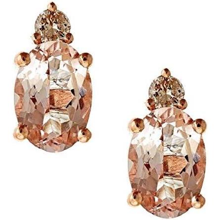 Gin & Grace 10K Rose Gold Genuine Morganite Oval With Natural Diamond (I1) Stud Earring for Women.