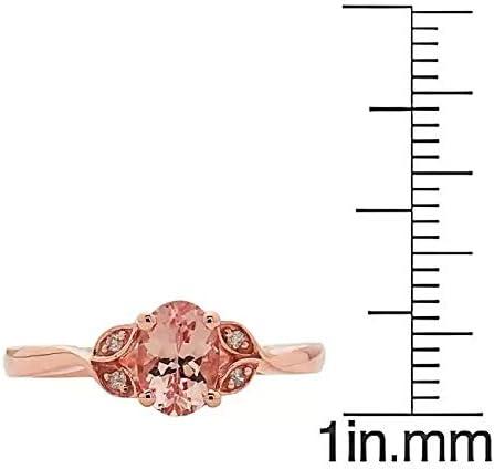 Gin & Grace 10K Rose Gold Genuine Morganite Ring with Diamonds for women | Ethically, authentically & organically sourced (Oval-cut) shaped Morganite jewelry for her | Morganite Ring for women