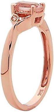 Stand out with this stunning ring, beautifully crafted of 10-karat rose gold and set with genuine Genuine morganite and Gin & Grace Natural diamonds. A high polish finish completes the ring with a radiant shine. Jewelry Type: Fine Gender: Female Gemstone colors: Pink Gemstone shapes: Oval One prong-set oval-cut Genuine morganite measures 5 mm wide x 7 mm long Gemstone weight: 0.76 carats Total gemstone weight: 0.76 carats Diamonds: Four Diamond cut: Round Diamond measurements: 1 mm Diamond weight: 0.03 carat Color: G-H Clarity: I1-I2 Setting: Prong Metal: 10k rose gold Finish: High polish Metal weight: 1.88 grams Ring setting dimensions: 19 mm wide x 23 mm long x 5 mm deep Band dimensions: 2 mm wide Size: 7