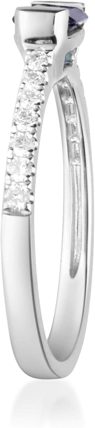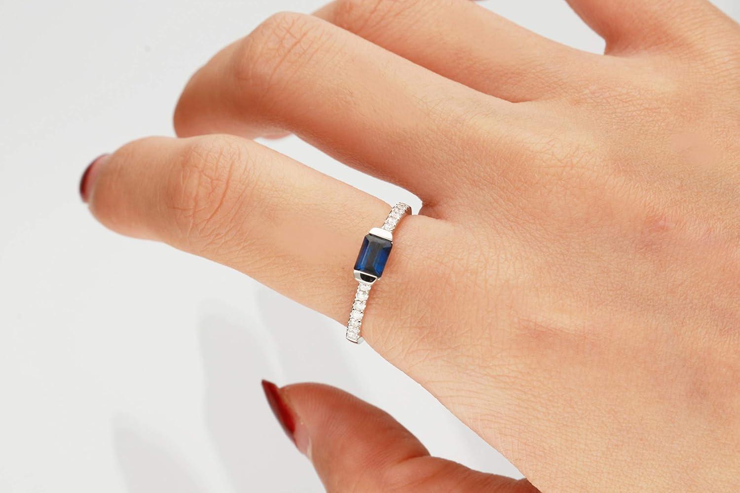 Gin & Grace 10K White Genuine Blue Sapphire Ring with Diamonds for women | Ethically, authentically & organically sourced (Emerald-Cut) shaped Sapphire hand-crafted jewelry for her | Sapphire Ring for women