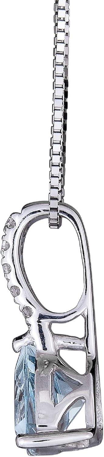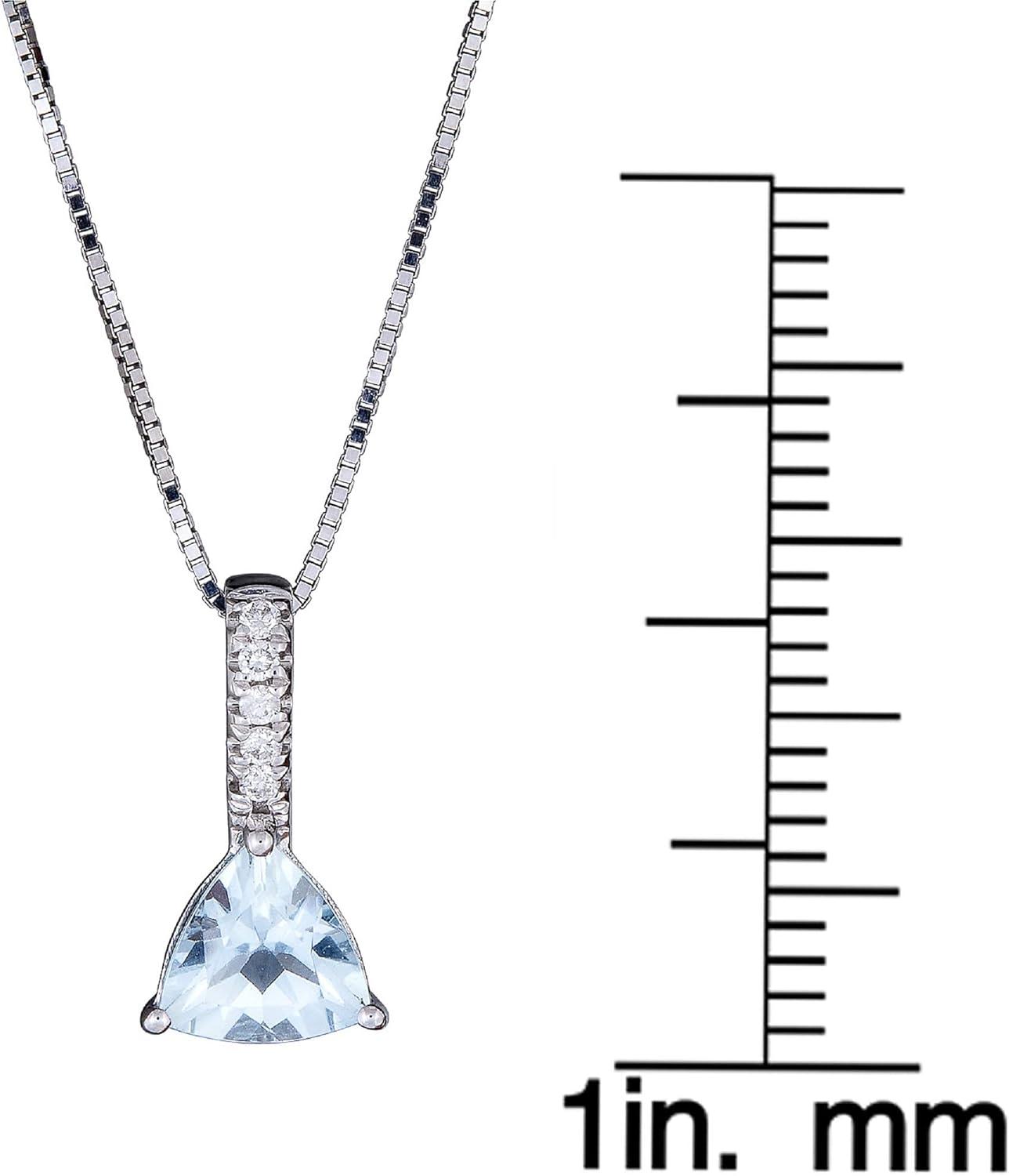Decorate yourself in elegance with this Pendant is crafted from 10-karat White Gold by Gin & Grace Pendant. This Pendant is made up of 6MM Trillion-Cut Prong setting Genuine Aquamarine (1 Pcs) 0.69 Carat and Round-Cut Prong setting Natural White Diamond (5 Pcs) 0.03 Carat. This Pendant is weight 0.44 grams. The gorgeous Pendant hangs from a 18-inch wheat chain. This delicate Pendant is polished to a high finish shine.