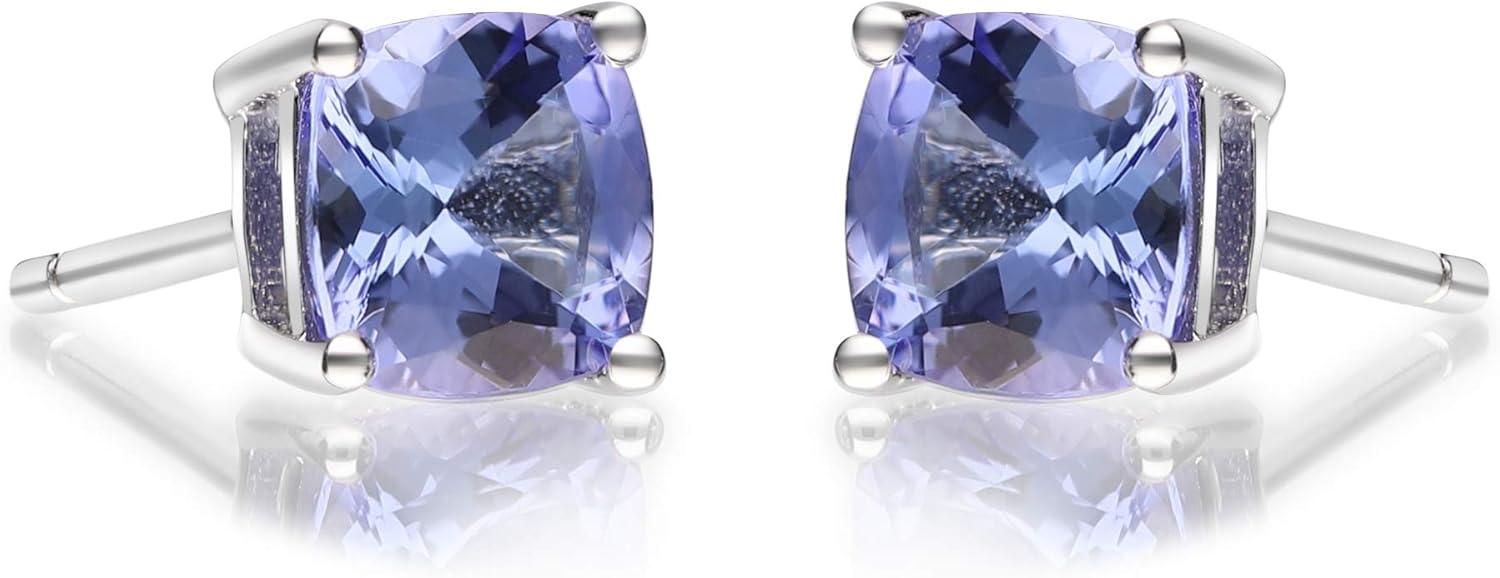 Gin & Grace 10K White Gold Genuine Blue Tanzanite Gemstone Stud Earring for Women