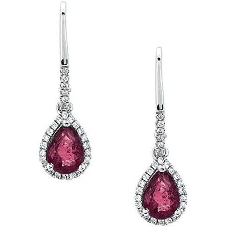 imageGin ampamp Grace 14K White Gold Genuine Ruby Diamond I1I2 Drop Earring for Women