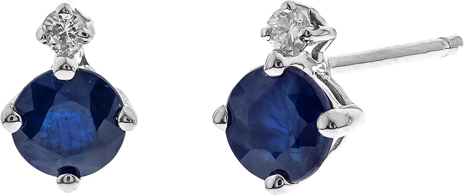 Gin & Grace 10K White Gold Natural Blue Sapphire and Natural Diamond Stud Earring for Women.