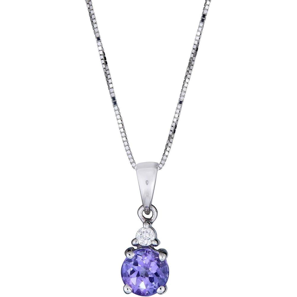 Gin & Grace 10K White Gold Natural Diamond (I1,I2) &Genuine Tanzanite Pendant for Women