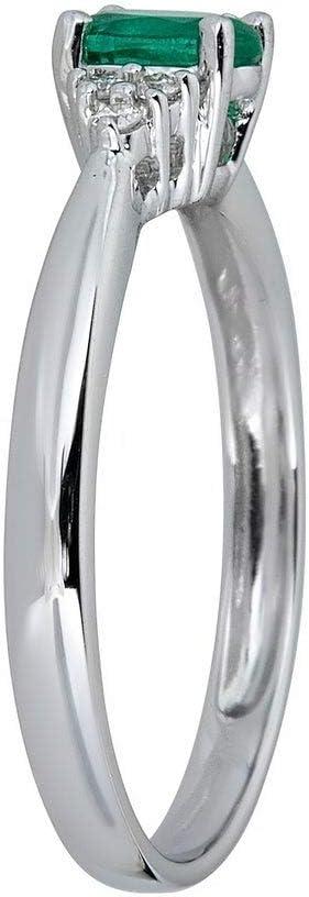 Gin & Grace 10K White Gold Natural Emerald with Diamond (I1,I2) Engagement Band Style Propose Promise Ring for Women