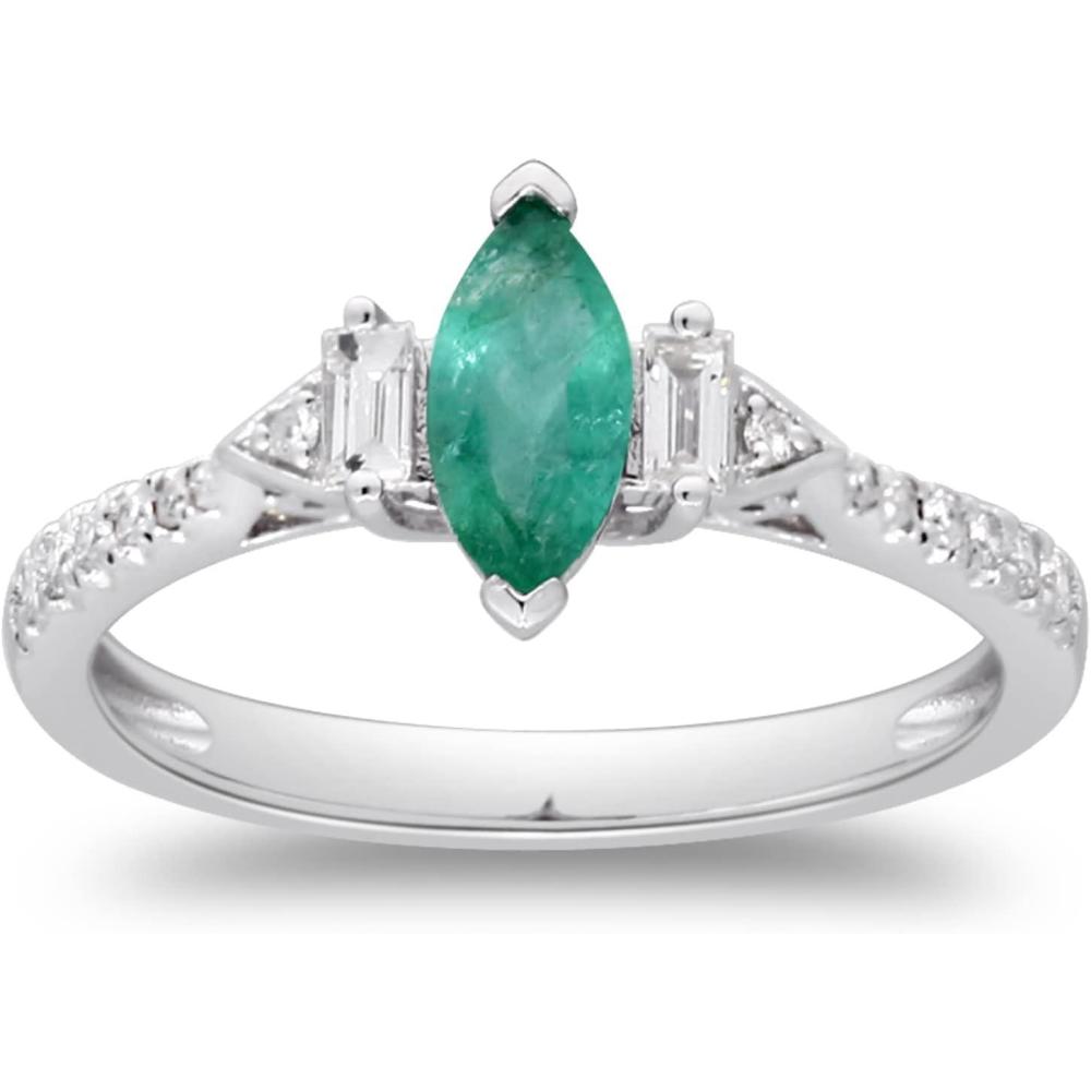Save big on Gin & Grace 10K White Gold Natural Zambian Emerald Ring with Natural Diamonds for women | Ethically, authentically & organically sourced Marquise-Cut Emerald hand-crafted jewelry for her. and accessories during our BOGO sale. Buy one, get one 50% off!