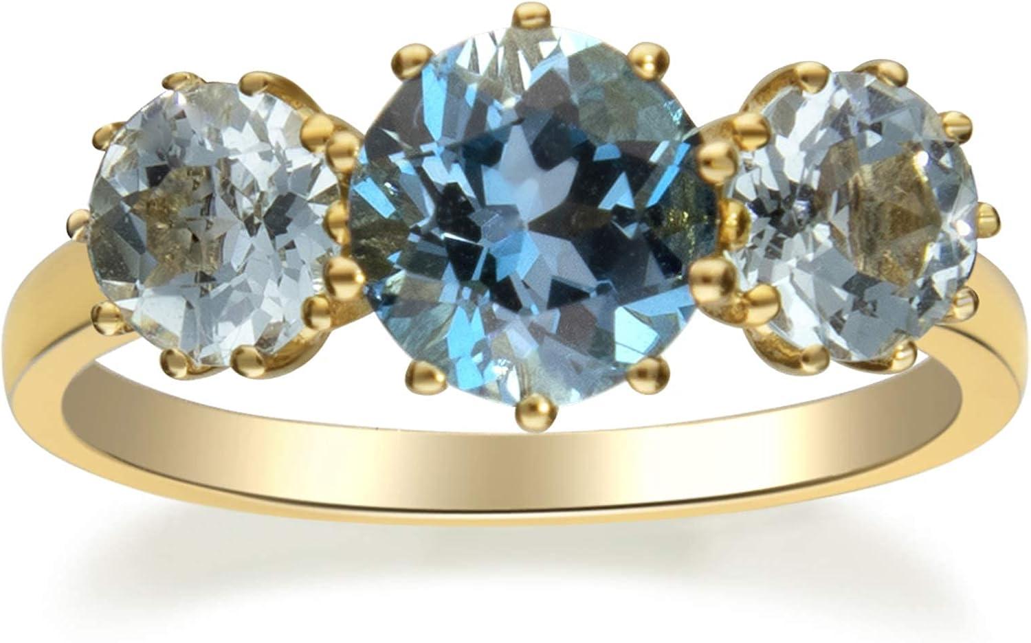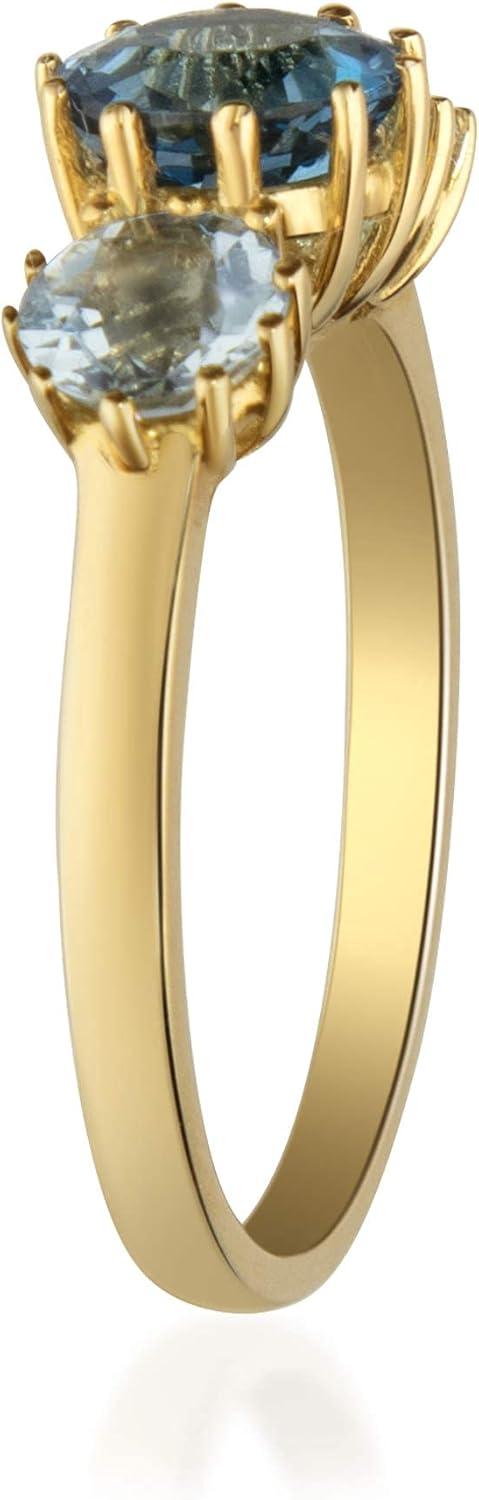 Stunning, timeless and classy eternity Unique ring. Decorate yourself in luxury with this Gin & Grace ring. This ring is made up of Round-Cut Prong Setting London Blue Topaz (1pcs) 1.35 Carat and Round-Cut Prong Setting Aquamarine (2pcs) 0.94 Carat for a lovely design. This ring is weight 2.35 grams. The ring is crafted of shining 10-karat Yellow Gold and is completed by a highly polished finish.