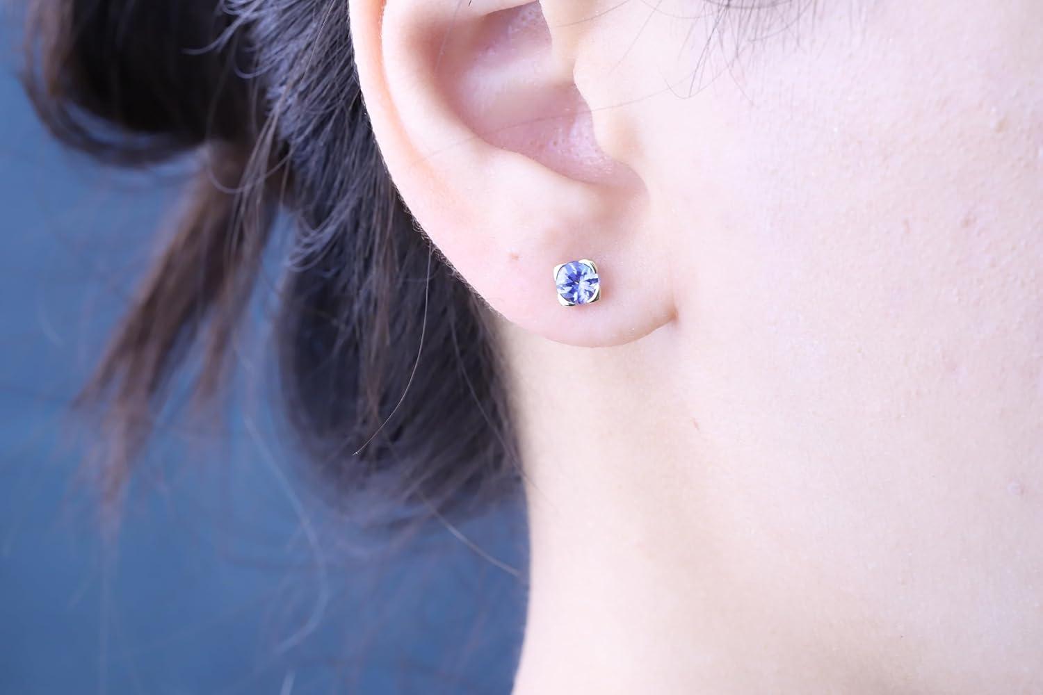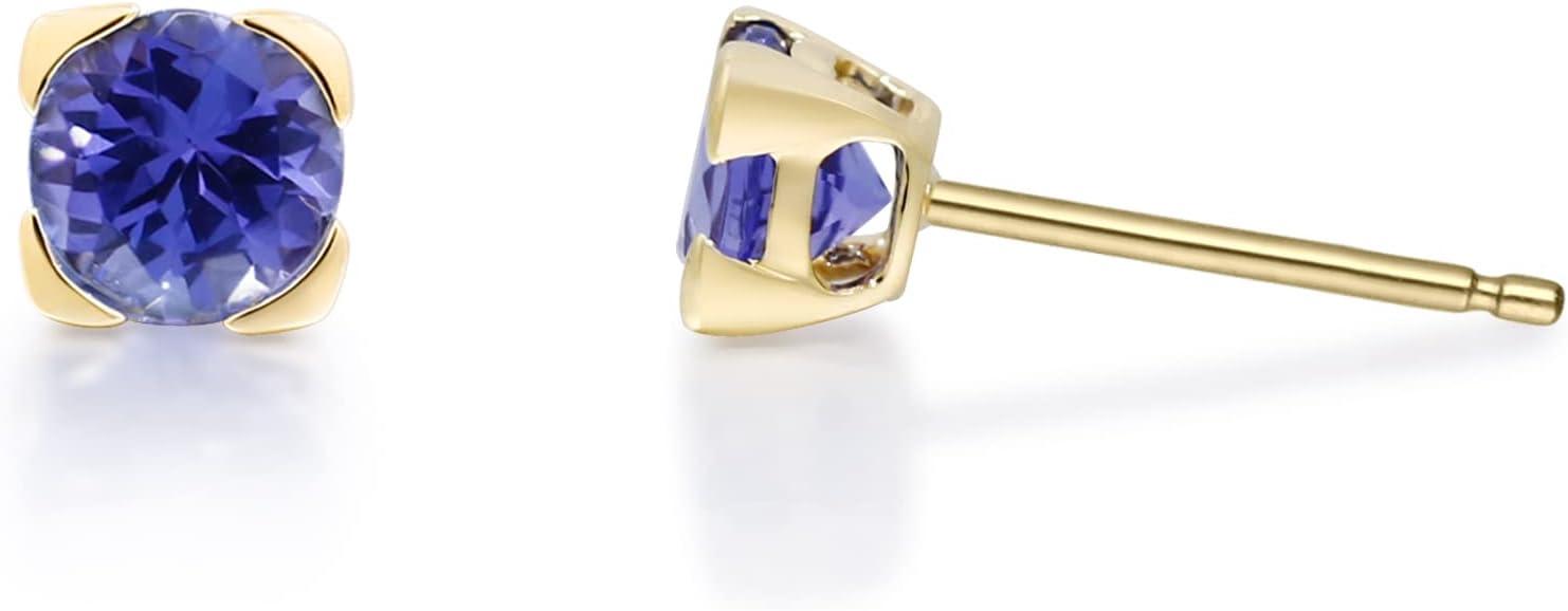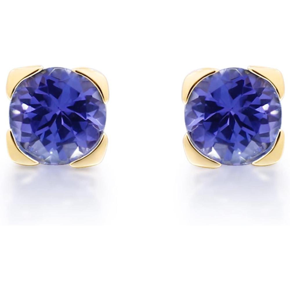 Decorate yourself in elegance with this Earring is crafted from 10-karat Yellow Gold by Gin & Grace Earring. This Earring is made up of 5.0 mm Round-Cut Tanzanite (2 pcs) 1.13 carat. This Earring is weight 0.86 grams. This delicate Earring is polished to a high finish shine.