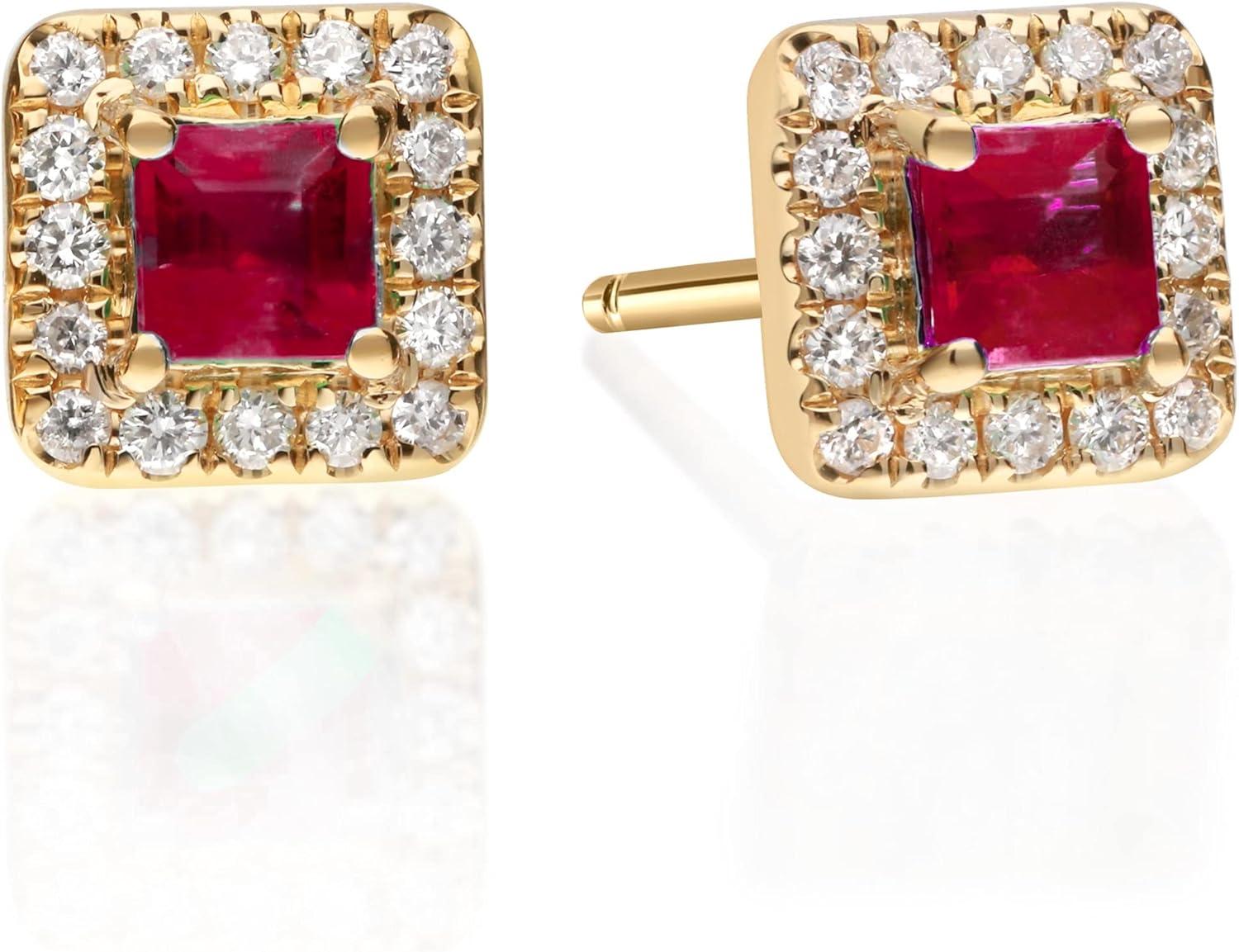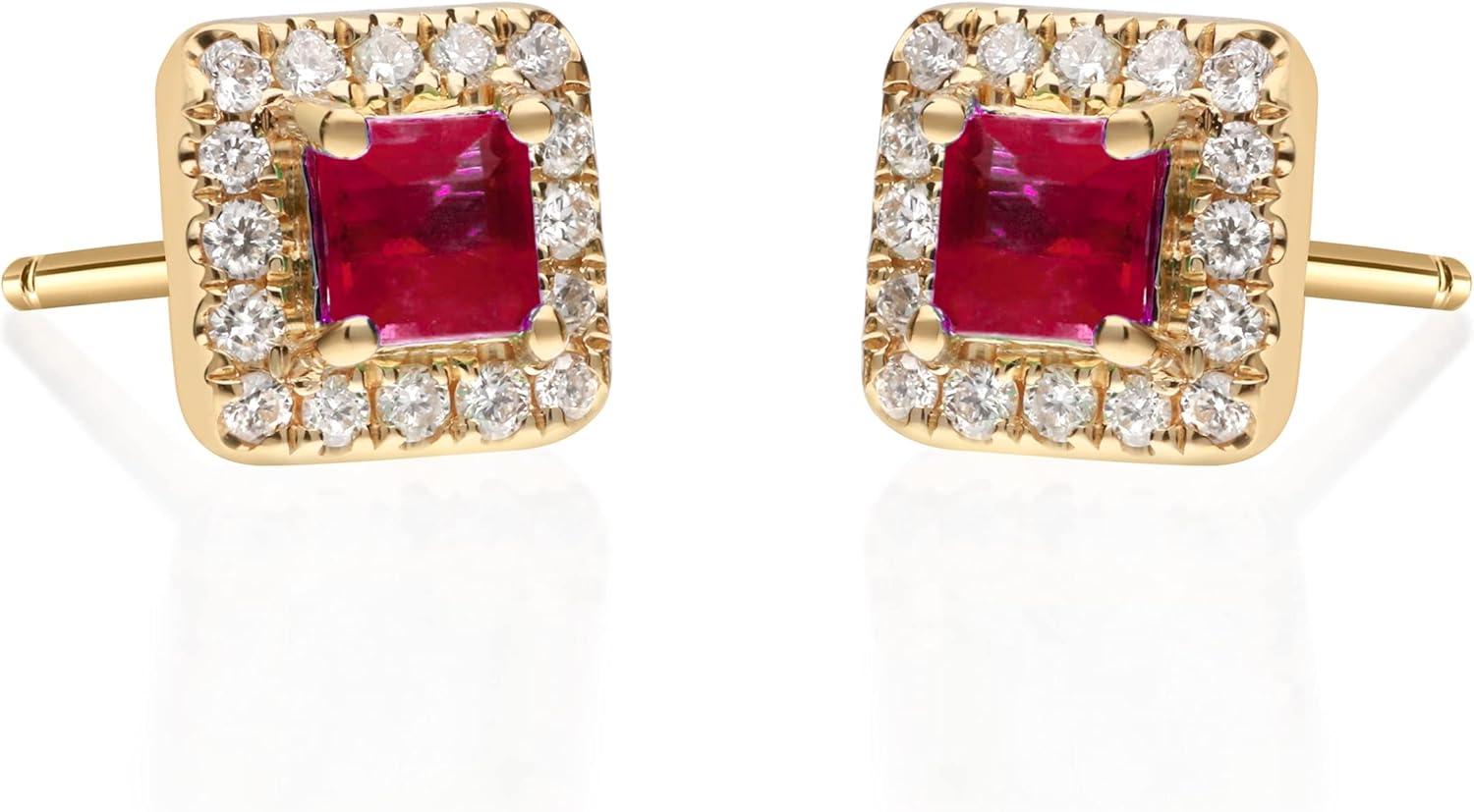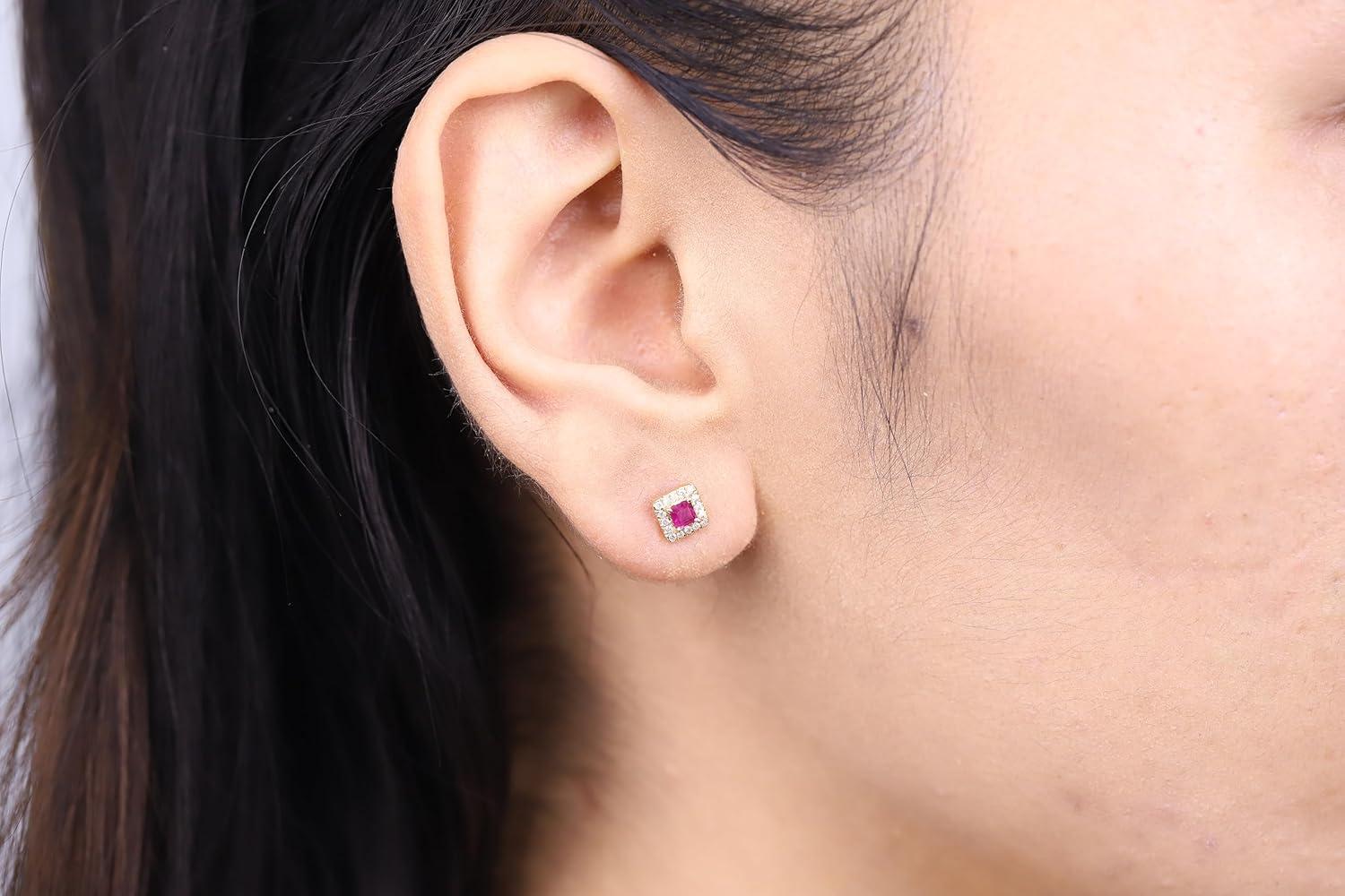 Gin & Grace 14K Yellow Gold Natural Ruby Diamond (I1,I2) Earring for Women