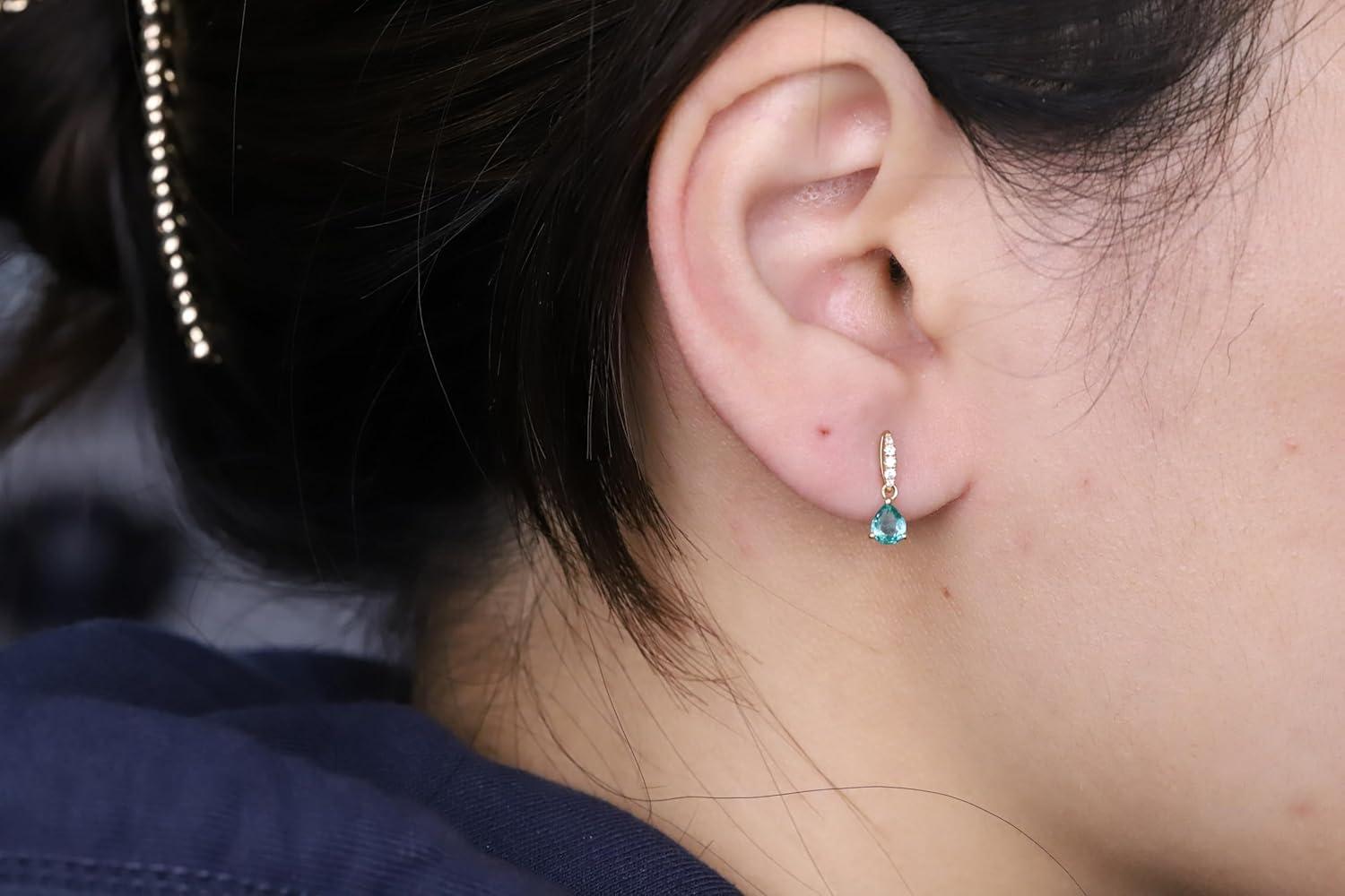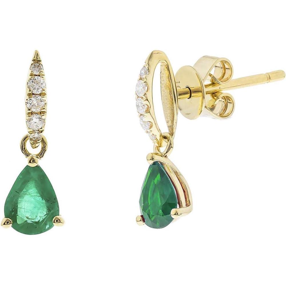 Gin & Grace 10K Yellow Gold Natural Zambian Emerald Earrings with Natural Diamonds for Women Holiday Gifts | Ethically, Authentically & Organically Sourced Pear-cut Emerald hand-crafted jewelry for her