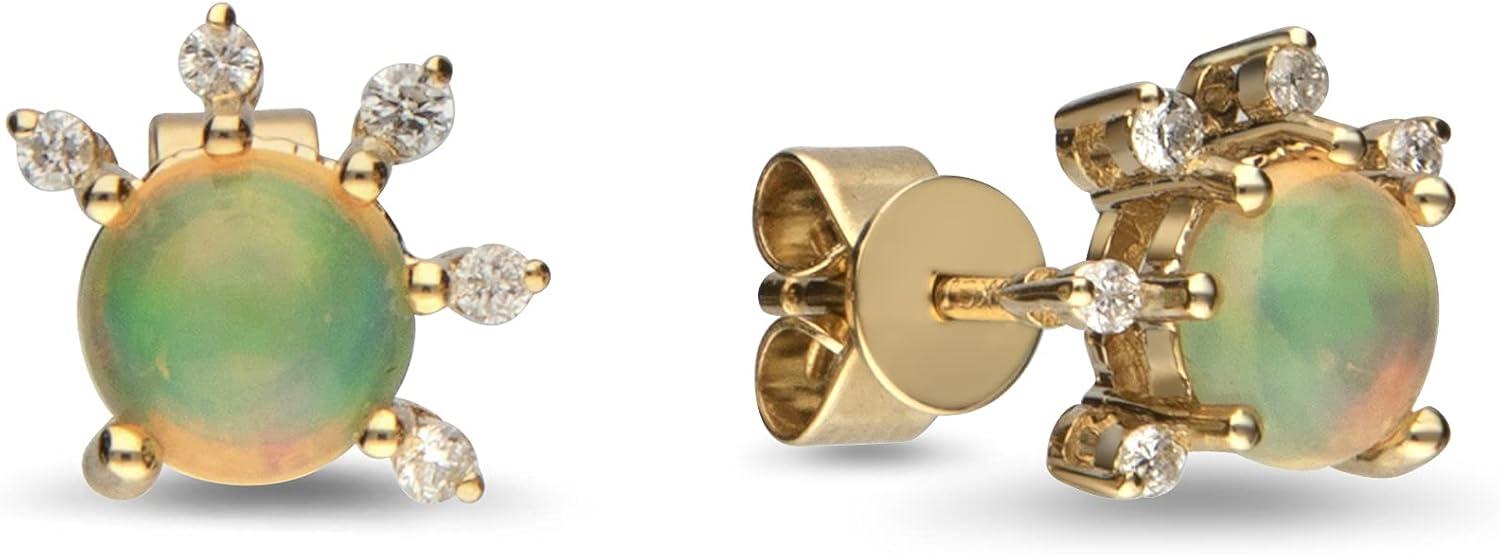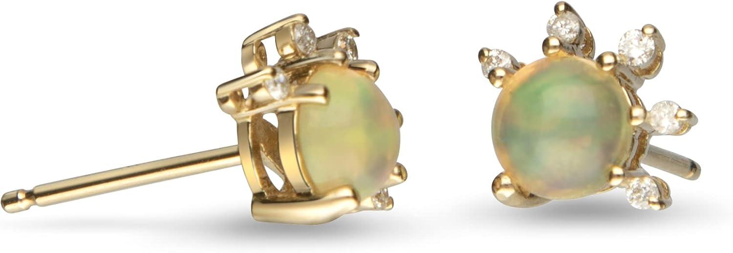 Gin & Grace 10K Yellow Gold Natural Ethiopian Opal Diamond Earring for Women Holiday Gifts | Ethically, Authentically & Organically Sourced opal hand-crafted jewelry for her | Opal Earrings for Women Holiday Gifts