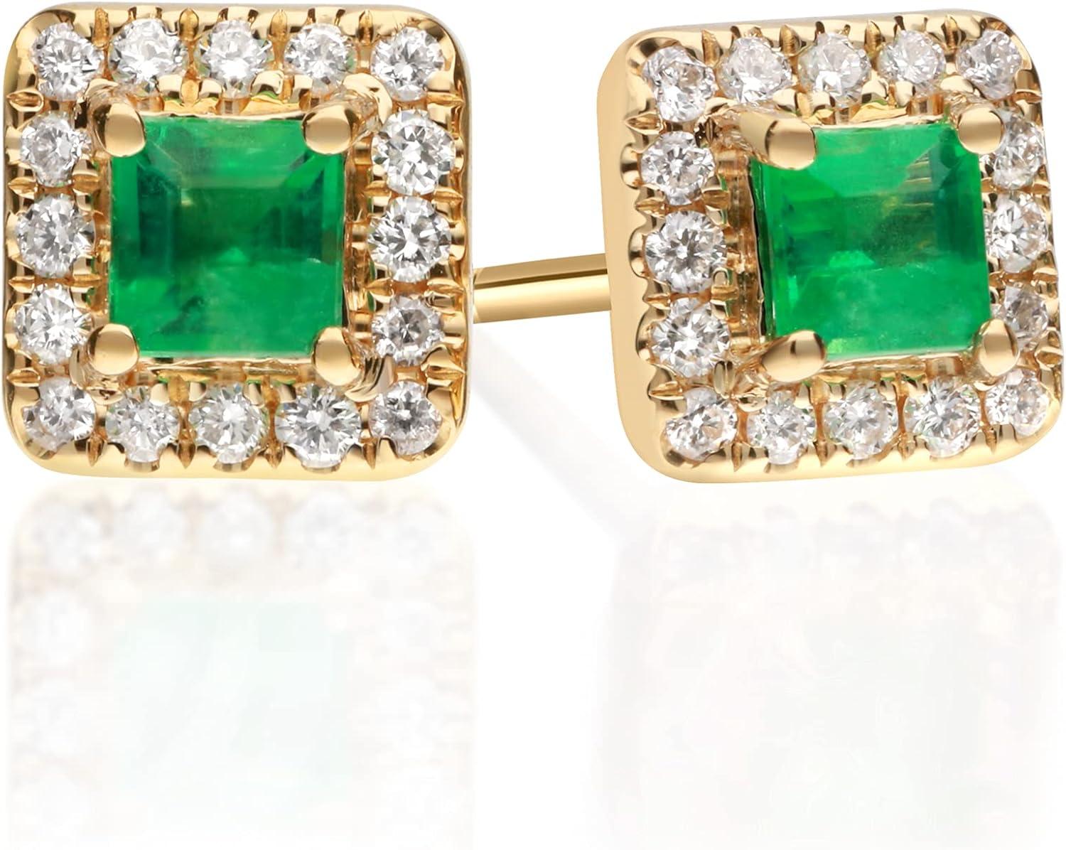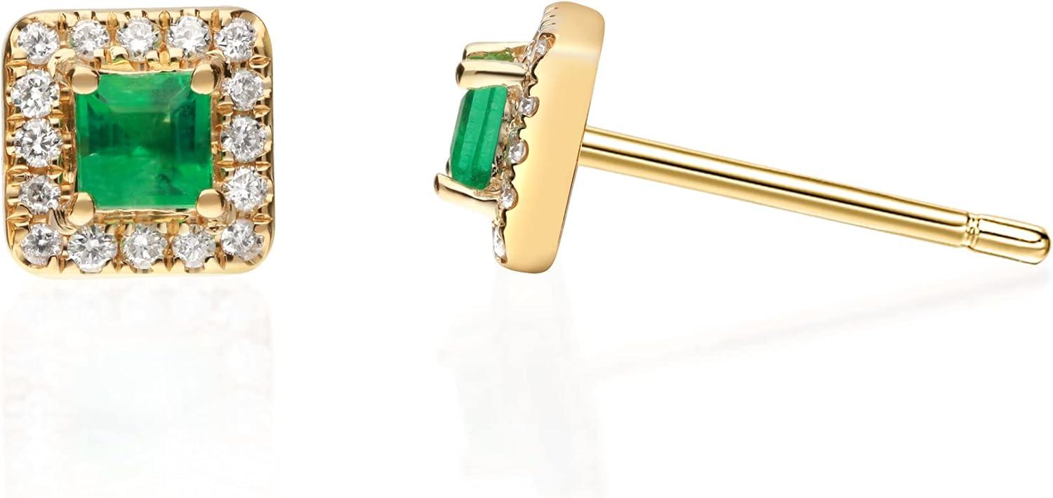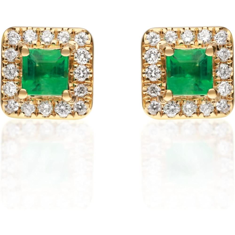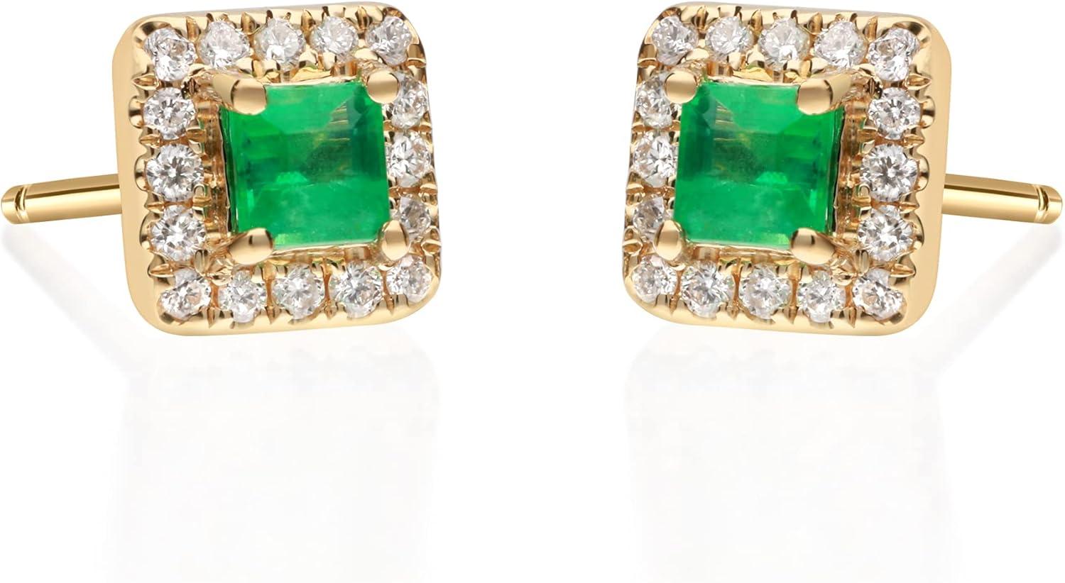 Decorate yourself in elegance with this Earring is crafted from 10-karat Yellow Gold by Gin & Grace. This Earring is made up of 3.0 mm Square-Cut Zambian Emerald (2 pcs) 0.33 carat and Round-cut Diamond (32 pcs) 0.12 Carat. This Earring is weight 1.09 grams. This delicate Earring is polished to a high finish shine.
