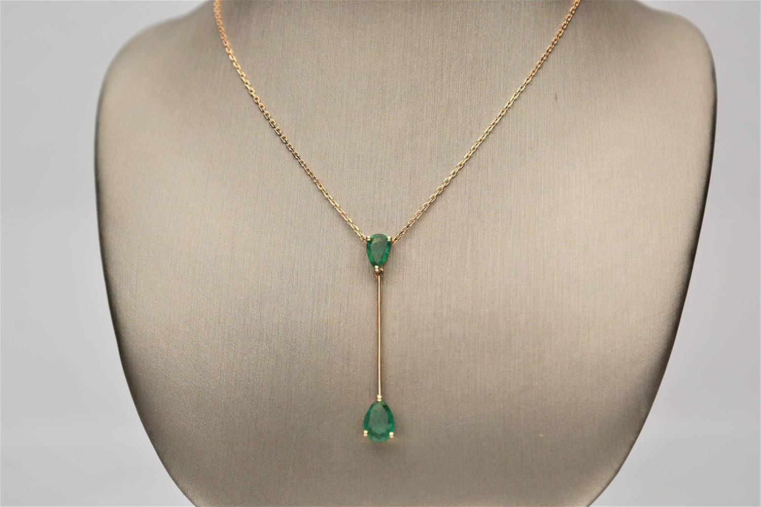 Gin & Grace 10K Yellow Gold Natural Zambian Emerald Pendant For Women | Ethically, Authentically & Organically Sourced Pear-Cut Emerald Hand-Crafted Jewelry For Her | Emerald Pendant For Women