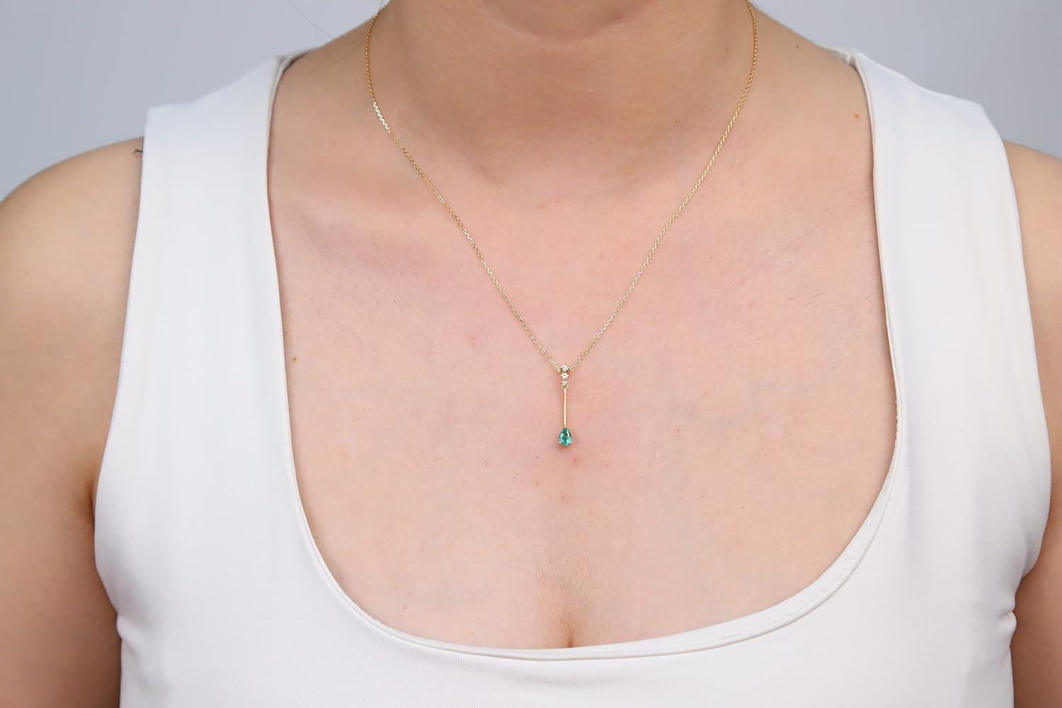 Stunning, timeless and classy eternity Unique Pendant. Decorate yourself in luxury with this Gin & Grace Pendant. The 10K Yellow Gold jewelry boasts Pear-Cut Prong Setting Natural Emerald (1 pc) 0.37 Carat, along with Natural Round cut white Diamond (3 Pcs) 0.08 Carat , accent stones for a lovely design. This Pendant is weight 1.0 grams. Crafted with 10K Yellow Gold, this delicate Pendant is polished to a high finish shine.