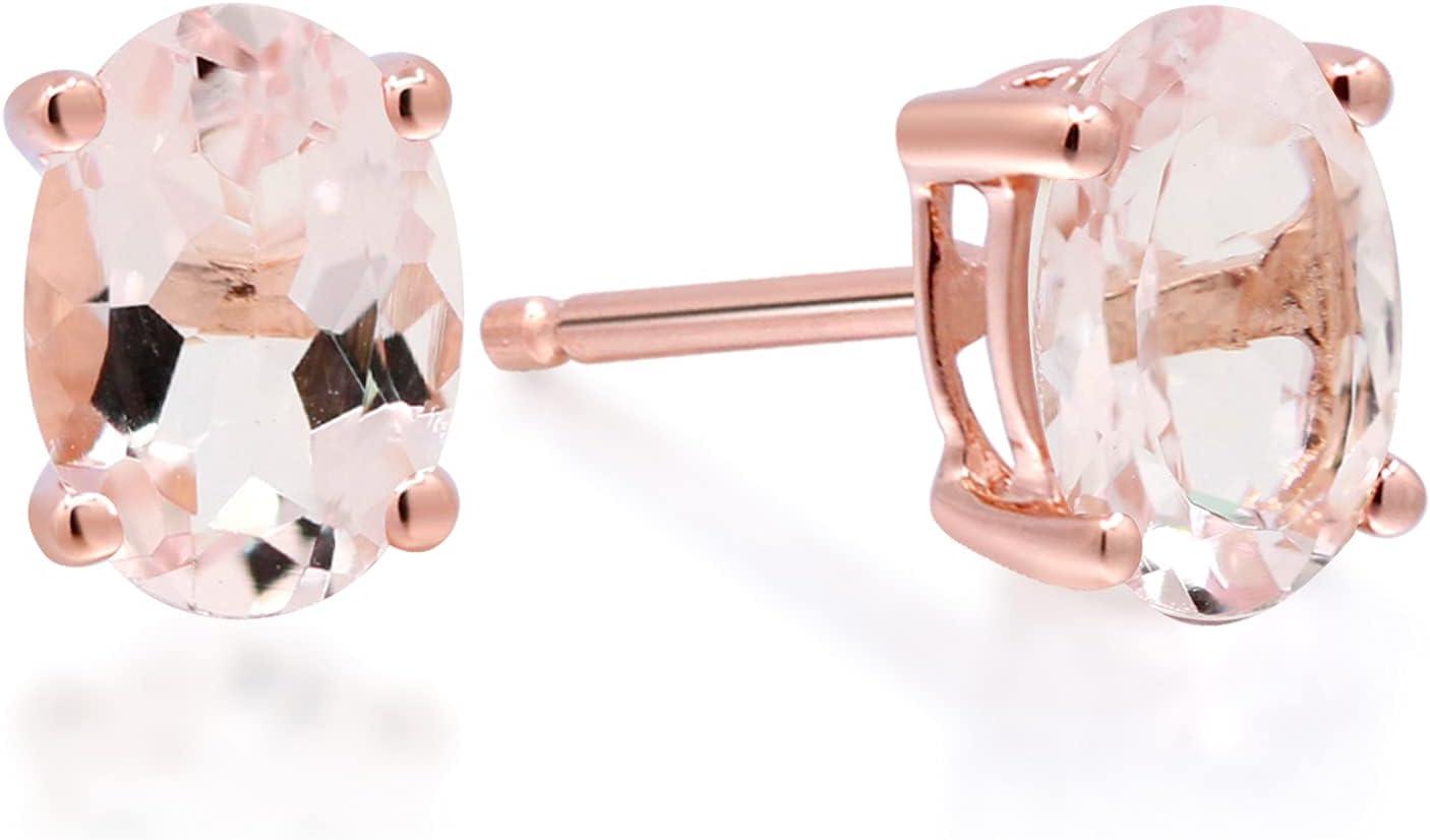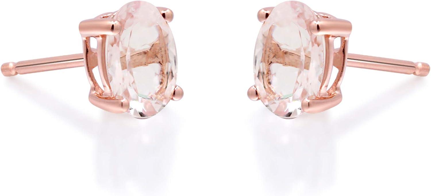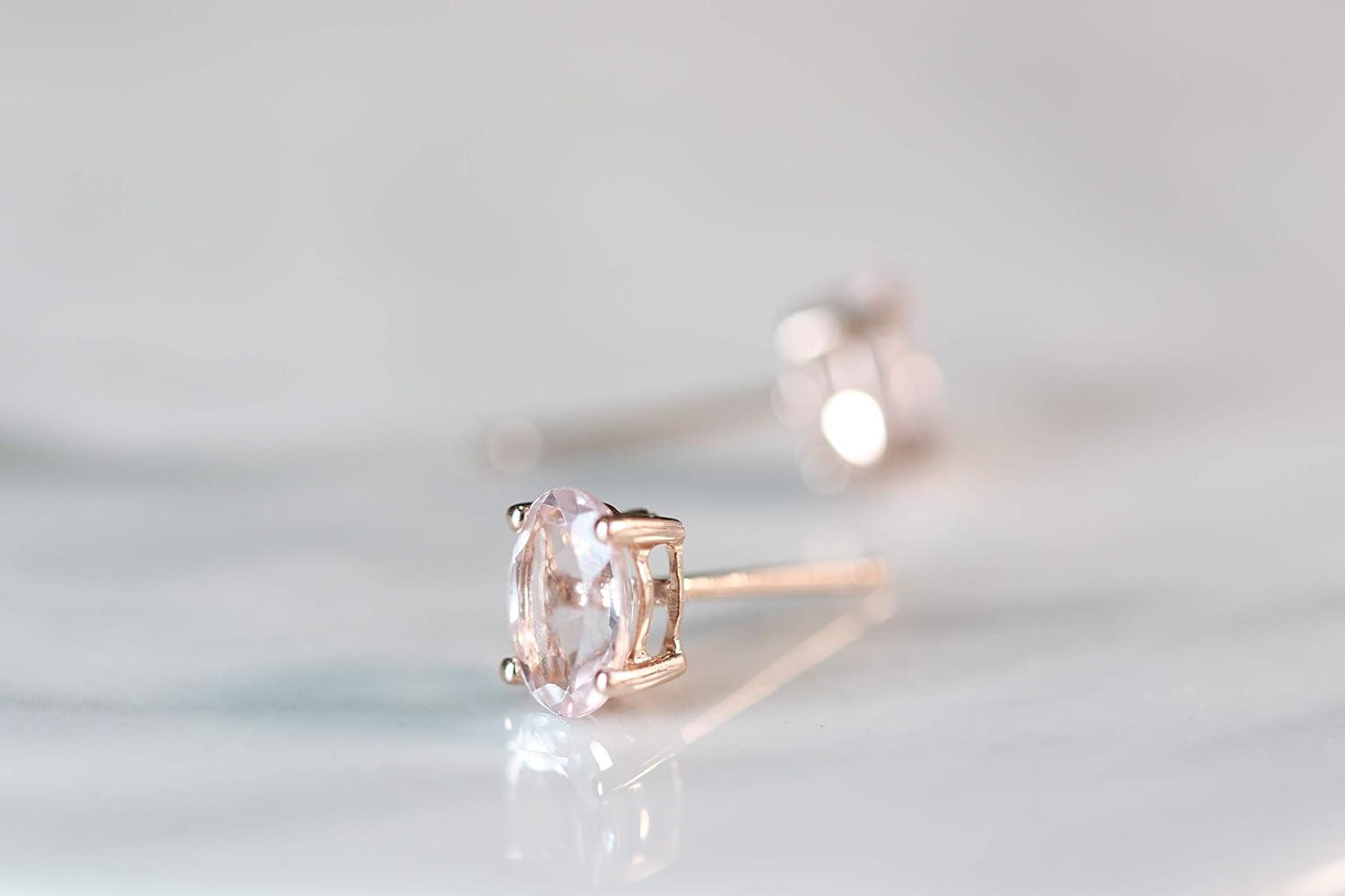 Gin &Grace 14K Rose Gold Genuine Morganite Earrings for women | Ethically, authentically & organically sourced (Oval-cut) shaped Morganite hand-crafted jewelry for her | Morganite Earrings for women
