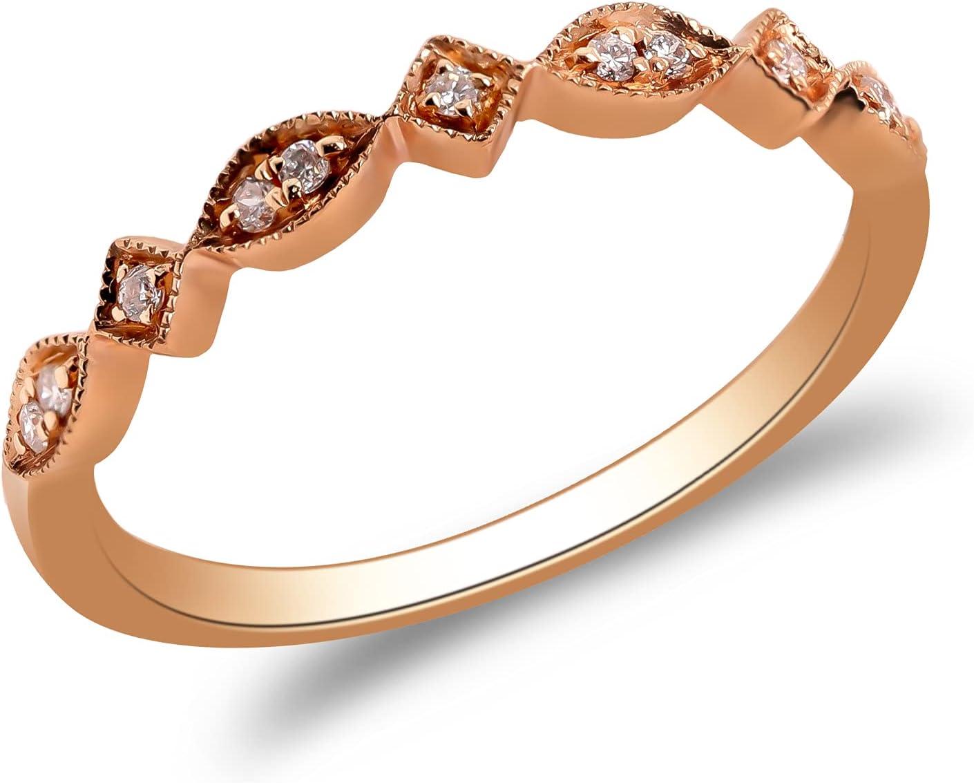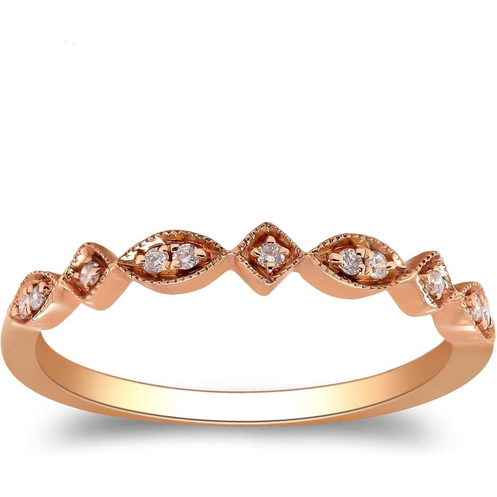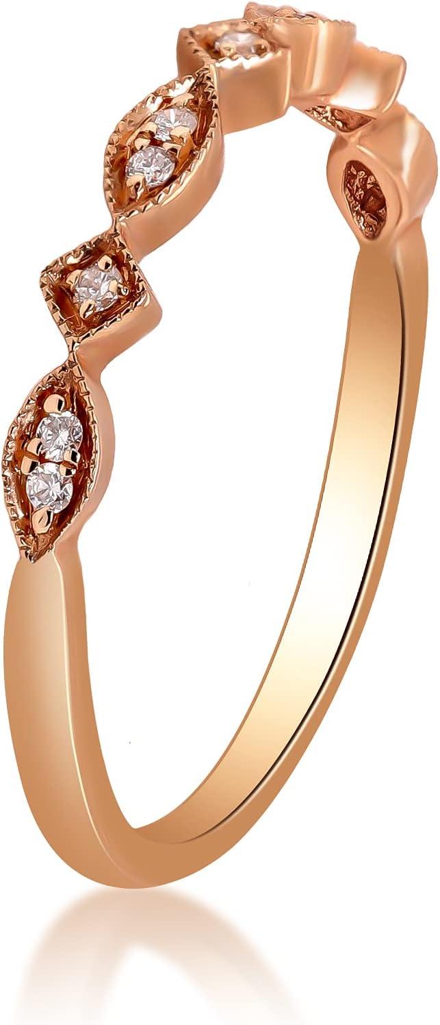 Decorate yourself in elegance with this Ring crafted from 14-karat Rose Gold by Gin & Grace Ring. This Ring is made up of Round-Cut White Diamond (11 Pcs) 0.08 Carat. This ring weighs 1.71 grams. This delicate ring is polished to a high finish shine.