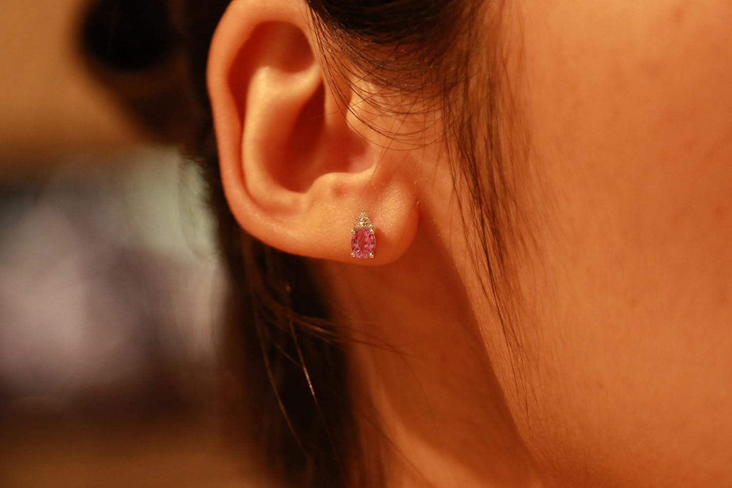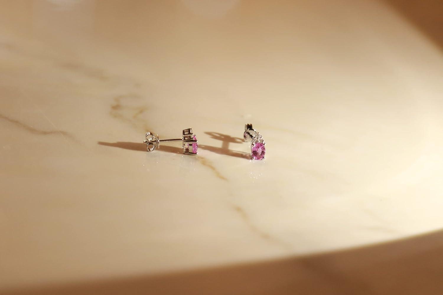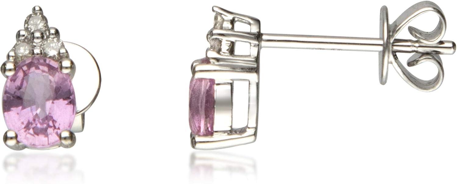 These beautiful earrings are centered by oval-cut Genuine Pink Sapphire, this pair of Gin & Grace earrings are simply stunning. Crafted finished with a high polished earrings features .06 carat white diamond accents are completed by butterfly clasps. Style: Stud Gemstone colors: Pink Gemstone shapes: Oval Two prong-set oval-cut Genuine Pink Sapphire each measure 4 mm wide x 5 mm long Gemstone weight: 0.91 carats Total gemstone weight: 0.91 carats Diamonds: six Diamond cut: Round-cut measure 1 mm Diamond weight: 0.06 carats Color: G-H Clarity: I1-I2 Setting: Prong-set Metal: 14k white gold Finish: High polish Clasp: Butterfly Metal weight: 0.97 grams Earring dimensions: 4 mm wide x 8 mm long x 15 mm deep