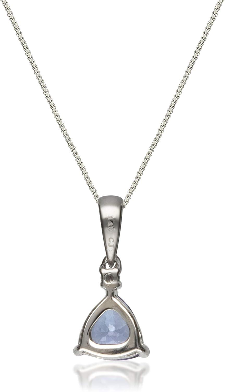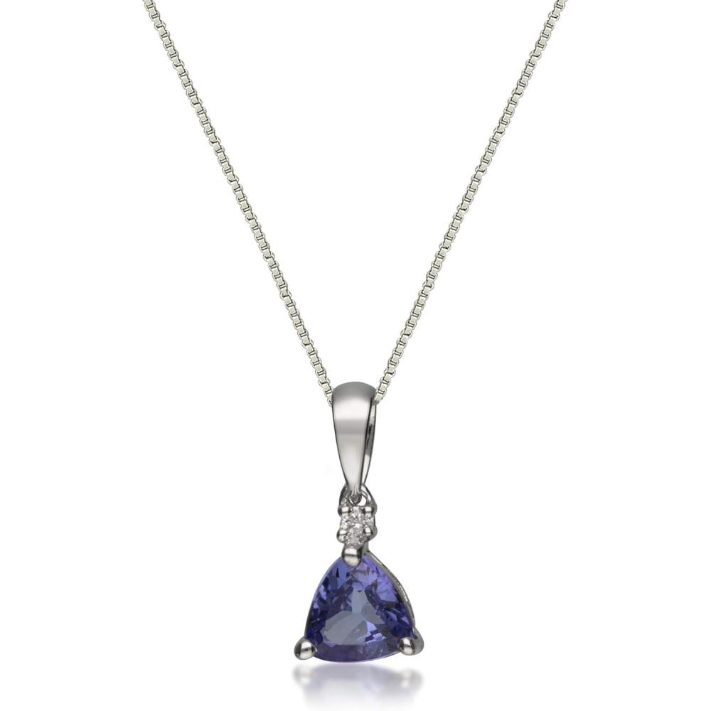 Stunning, timeless and classy eternity Unique Pendant. Decorate yourself in luxury with this Gin & Grace Pendant. The 14k White Gold jewelry boasts Trillion-Cut Prong Setting Genuine Tanzanite (1 pcs) 0.99 Carat, along with Natural Round cut white Diamond (1 Pcs) 0.03 Carat, accent stones for a lovely design. This Pendant is weight 0.58 grams. Crafted with 14k White Gold, this delicate Pendant is polished to a high finish shine.