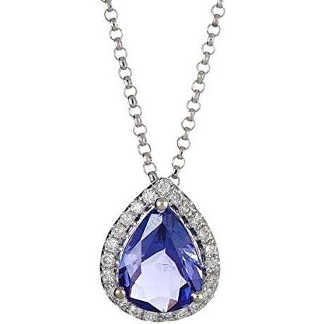 Decorate yourself in elegance with this Gin & Grace necklace. The jewelry boasts pear-cut Genuine tanzanite and Natural diamond accent stones for a sophisticated design. Style: Pendant Gemstone colors: Blue Gemstone shapes: Pear-cut One prong-set pear-cut Genuine tanzanite measure 7 mm wide x 9 mm long Gemstone weight: 1 1.57 Carat Total gemstone weight: 1 0.66 Carat Diamonds:23 Diamond cut: Round-cut measure 1 mm Natural Diamond weight: 0.16 Carat Color: G-H Clarity: I1-I2 Setting: Prong-set Metal: 14K white gold Finish: High polish Chain: Box Chain length: 1 Mm wide x 18 mm inches long Clasp: Spring ring Metal weight: 2.39 Gm Pendant dimensions: 8 Mm wide x 10 mm long x 4 mm deep