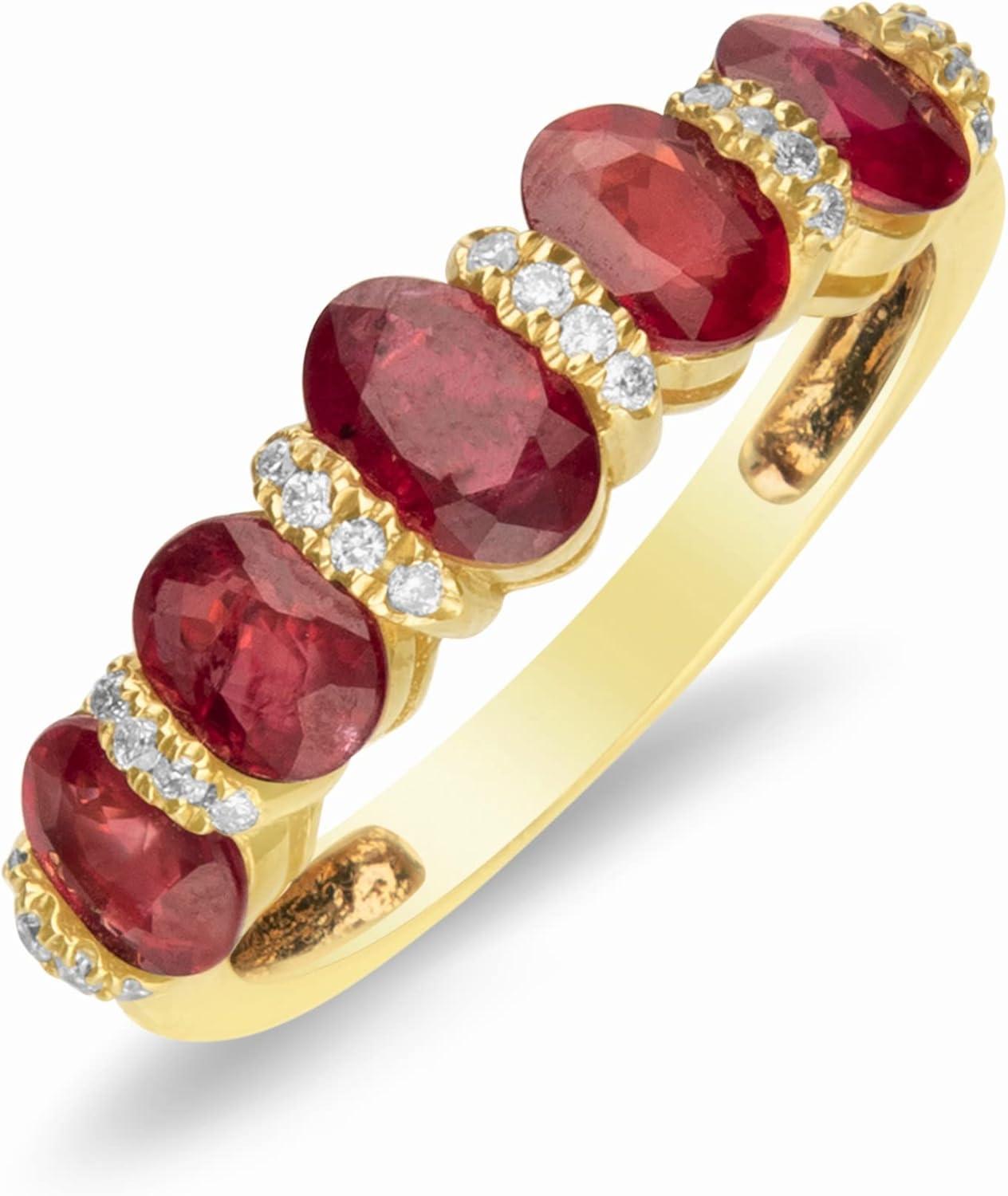 Gin & Grace 14K Yellow Gold Genuine Ruby Ring with Diamonds for women | Ethically, authentically & organically sourced (Oval-cut) shaped Ruby hand-crafted jewelry for her | Ruby Ring for women