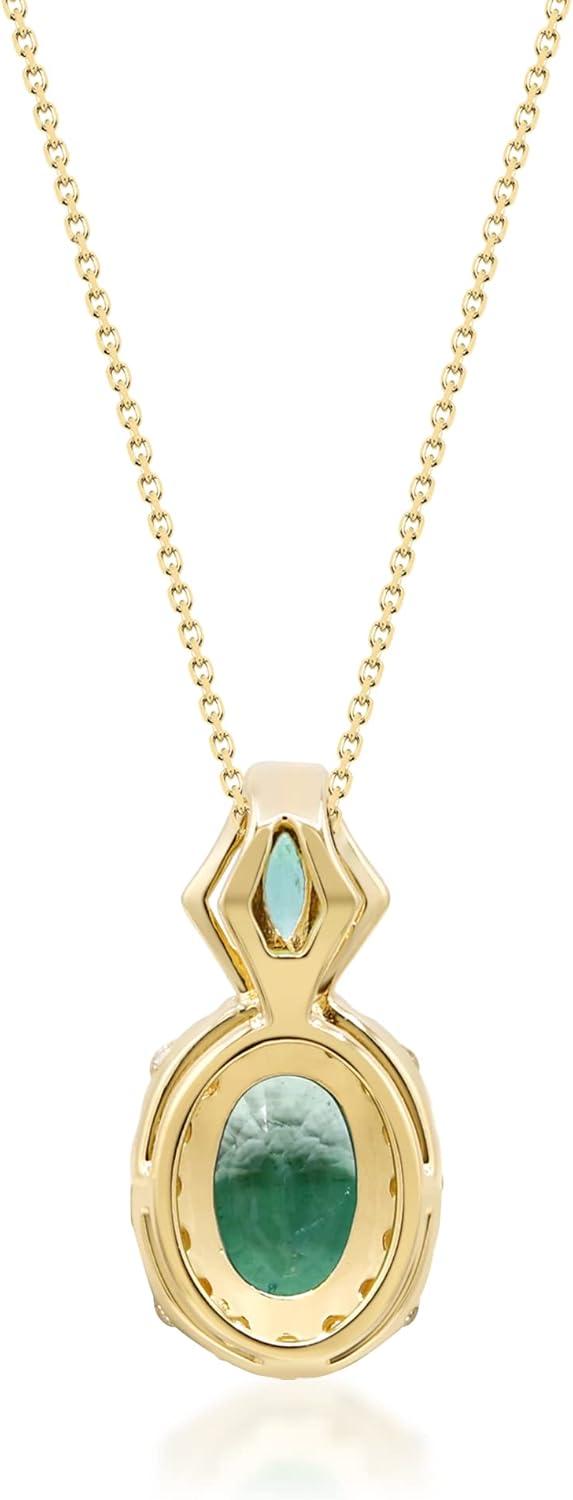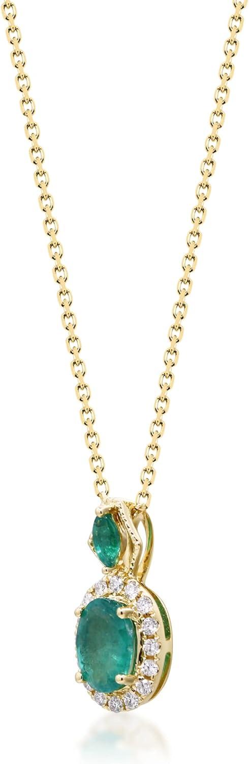 Decorate yourself in elegance with this Pendant is crafted from 14-karat Yellow Gold by Gin & Grace. This Pendant is made up of 7×5 mm Oval-Cut Emerald (1 pcs) 0.67 carat, 4×2 mm Marquise-cut Emerald (1 pcs) 0.08 carat and Round-cut White Diamond (16 Pcs) 0.12 Carat. This Pendant is weight 2.17 grams. This delicate Pendant is polished to a high finish shine.