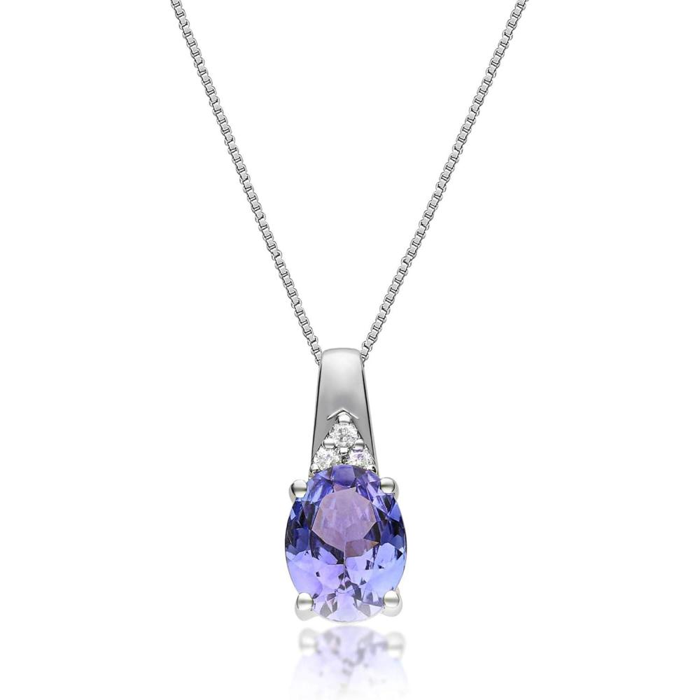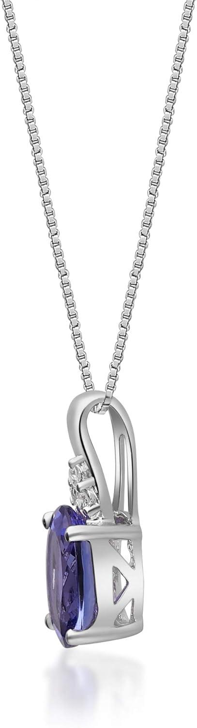 imageGin ampamp Grace 925 Sterling Silver Blue Genuine Tanzanite With Natural Diamond I1 Pendant for Women