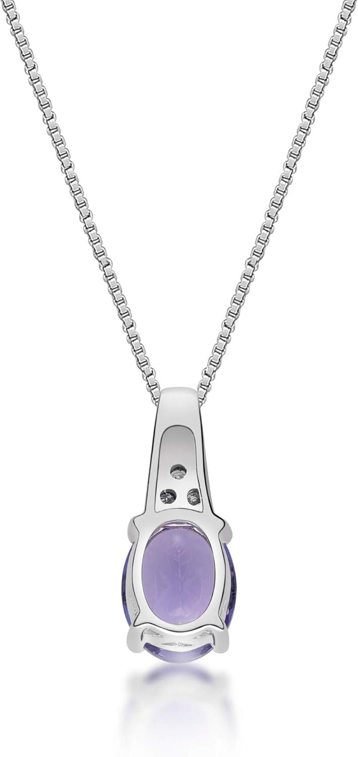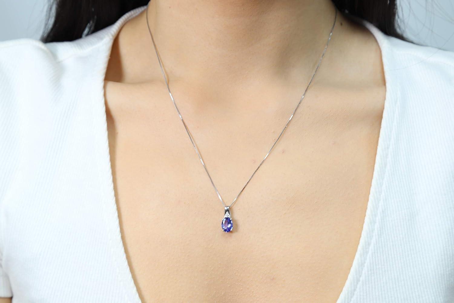 Gin & Grace 925 Sterling Silver Blue Genuine Tanzanite With Natural Diamond (I1) Pendant for Women