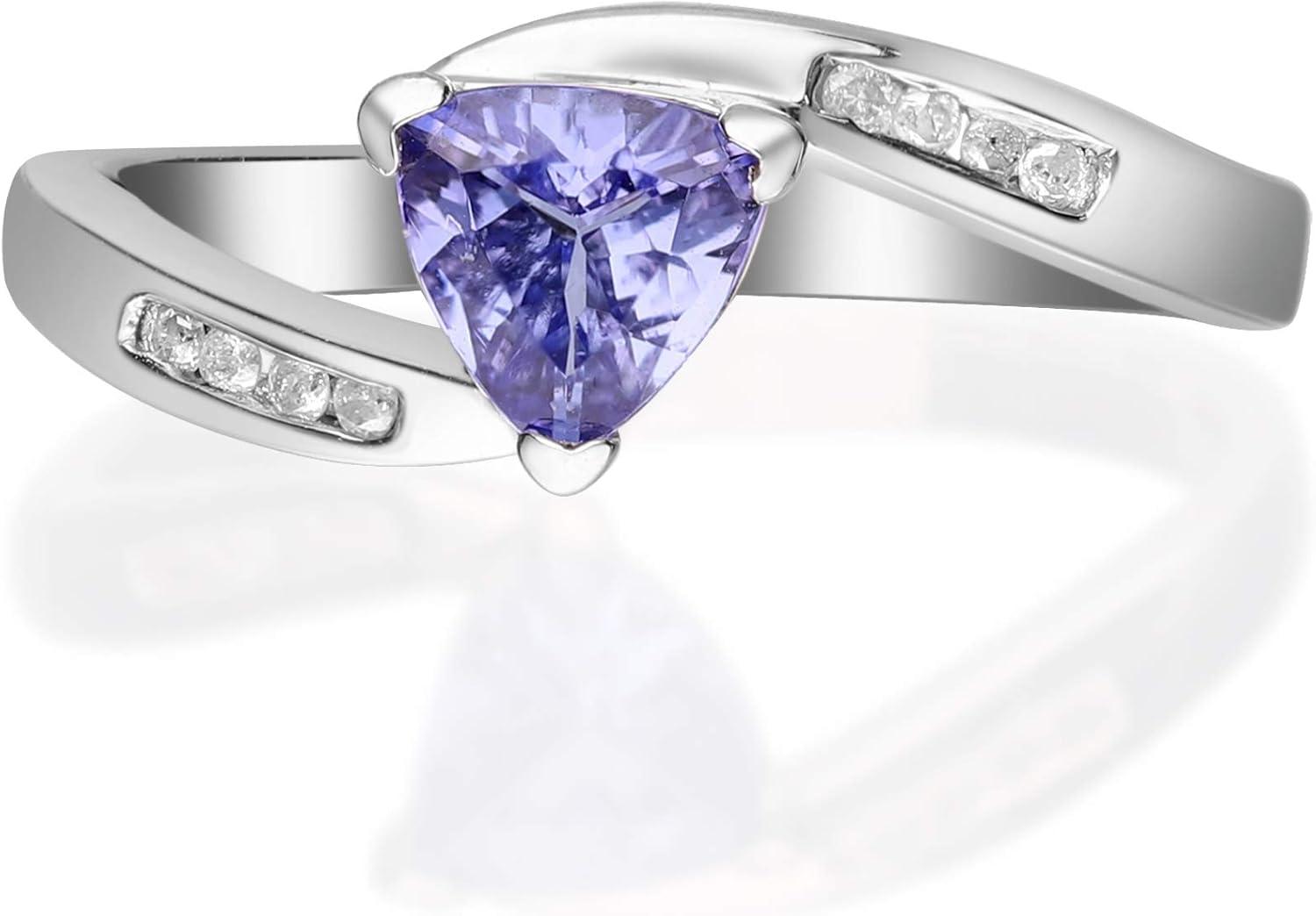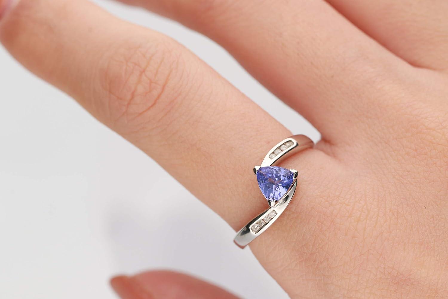 Stunning, timeless and classy eternity Unique Ring. Decorate yourself in luxury with this Gin & Grace Ring. The 925 Sterling Silver jewelry boasts Trillion-Shape Prong Setting Genuine Tanzanite (1 pc) 0.73 Carat along with Natural Round cut white Diamond (8 Pcs) 0.06 Carat, accent stones for a lovely design. This Ring is weight 2.22 grams. Crafted with 925 Sterling Silver, this delicate Ring is polished to a high finish shine.
