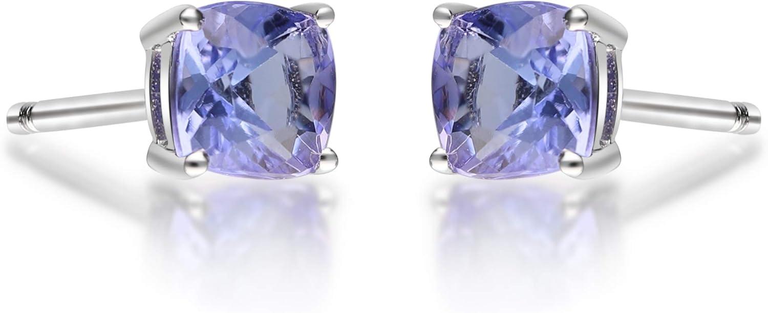 Gin & Grace 925 Sterling Silver Genuine Tanzanite Stud Earrings for Women